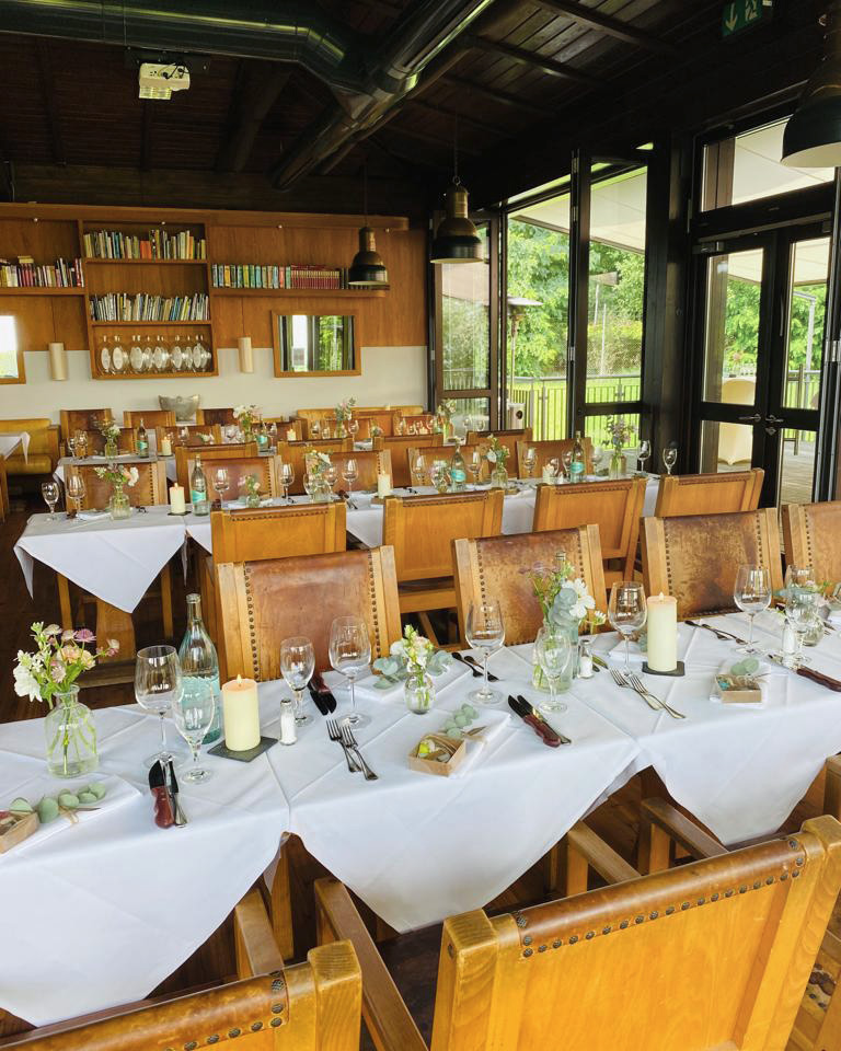 Für Feiern im kleineren Kreis lädt unser stilvolles Kaminzimmer mit privater Terrasse zu einer besonders persönlichen Atmosphäre ein. Warmes Licht, gemütliche Eleganz und der Blick ins Freie schaffen den perfekten Rahmen für Ihr Event.